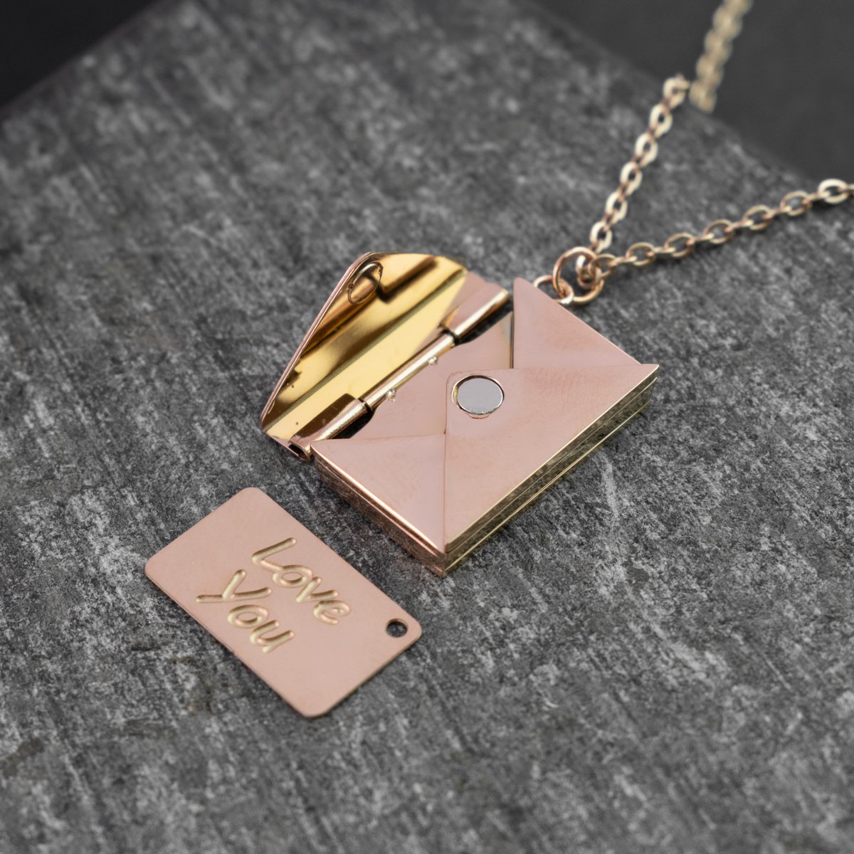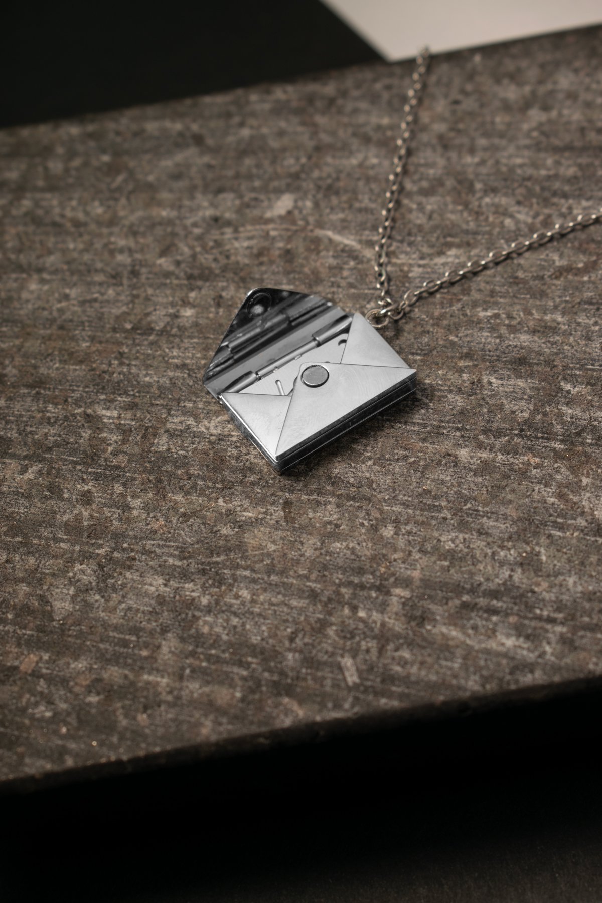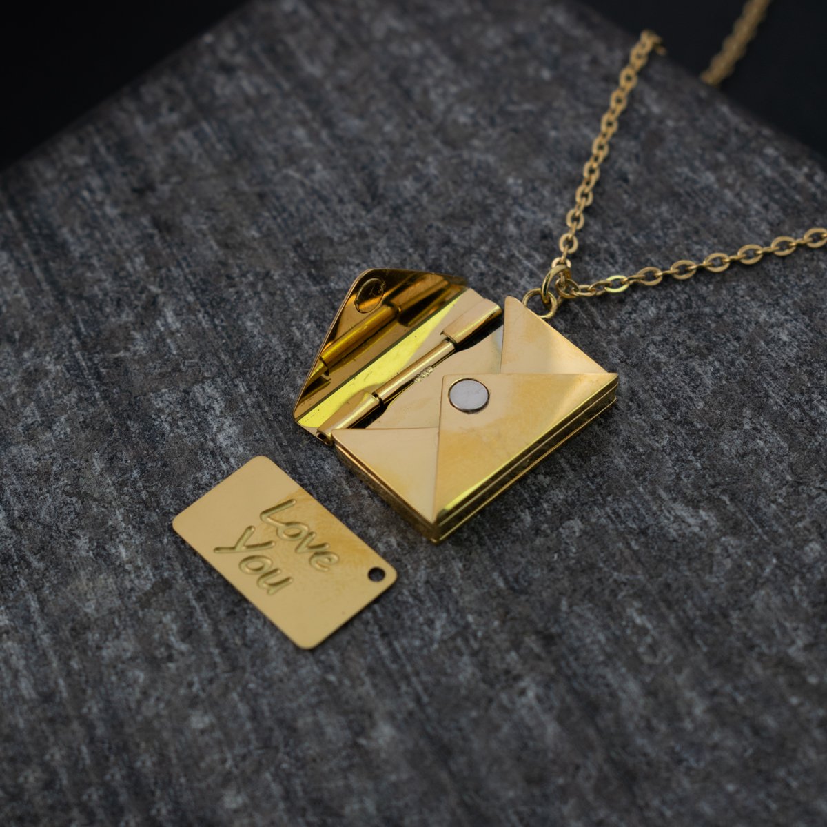Este collar en forma de sobre de acero inoxidable guarda más que estilo: es símbolo de recuerdos, promesas y palabras que no se olvidan. Perfecto para regalar a alguien especial o para llevar siempre cerca ese mensaje que te inspira.