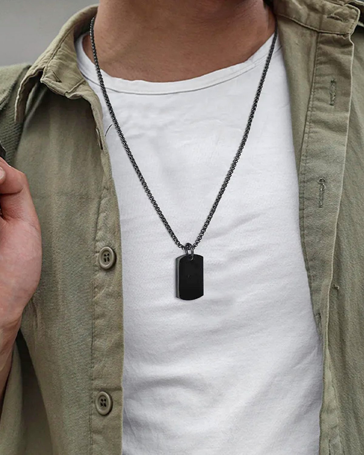 Este collar tipo dog tag en acero inoxidable negro es el complemento perfecto para un look auténtico y con carácter. Su diseño robusto y urbano lo convierte en una declaración de actitud: discreto, pero imposible de ignorar.