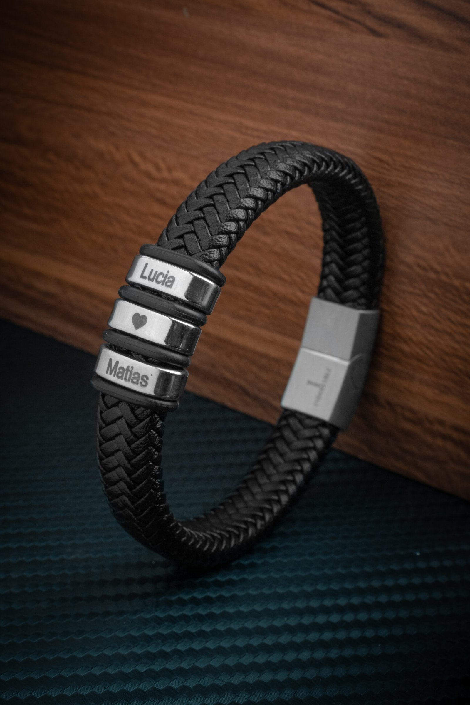 - Acero inoxidable, cuero genuino