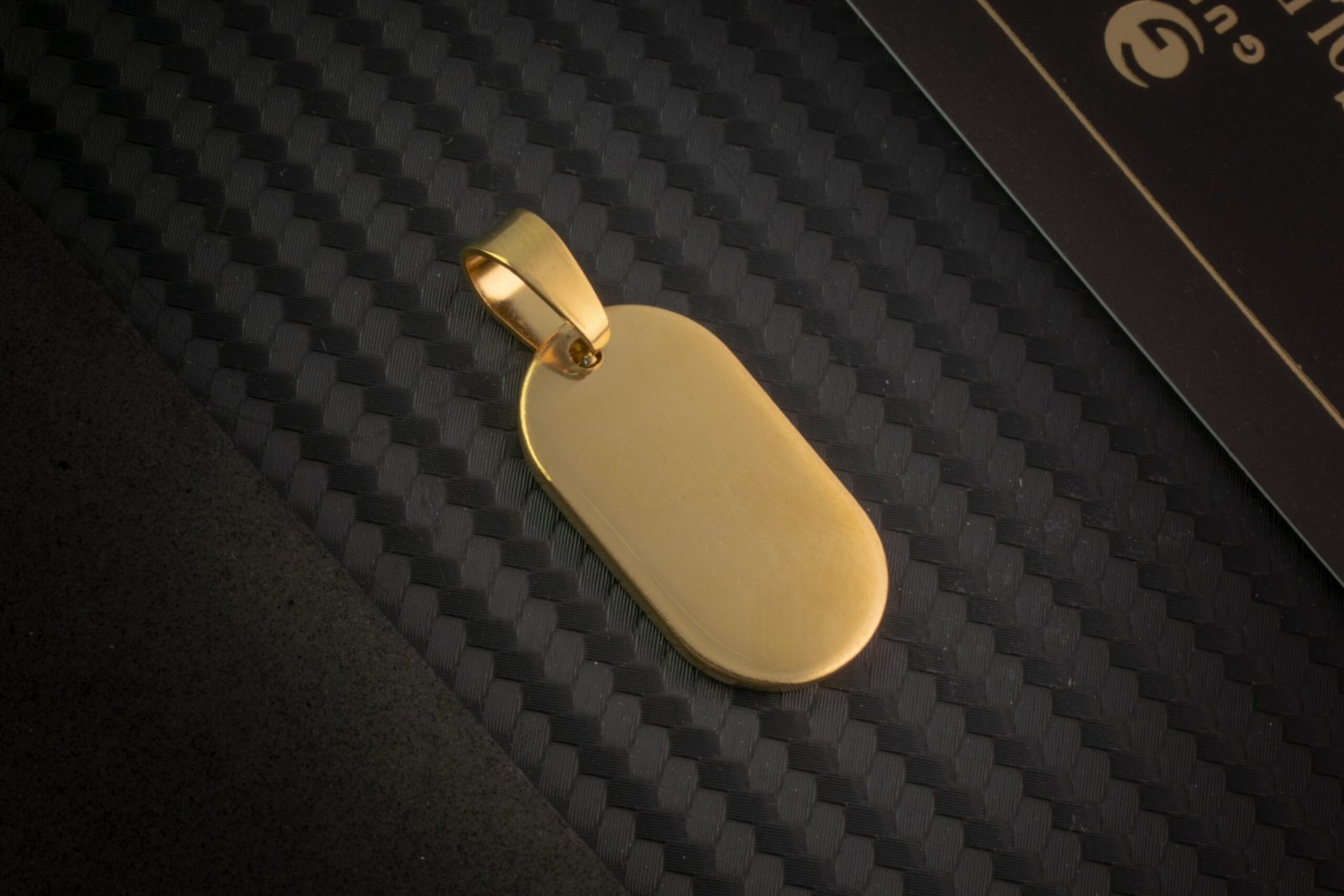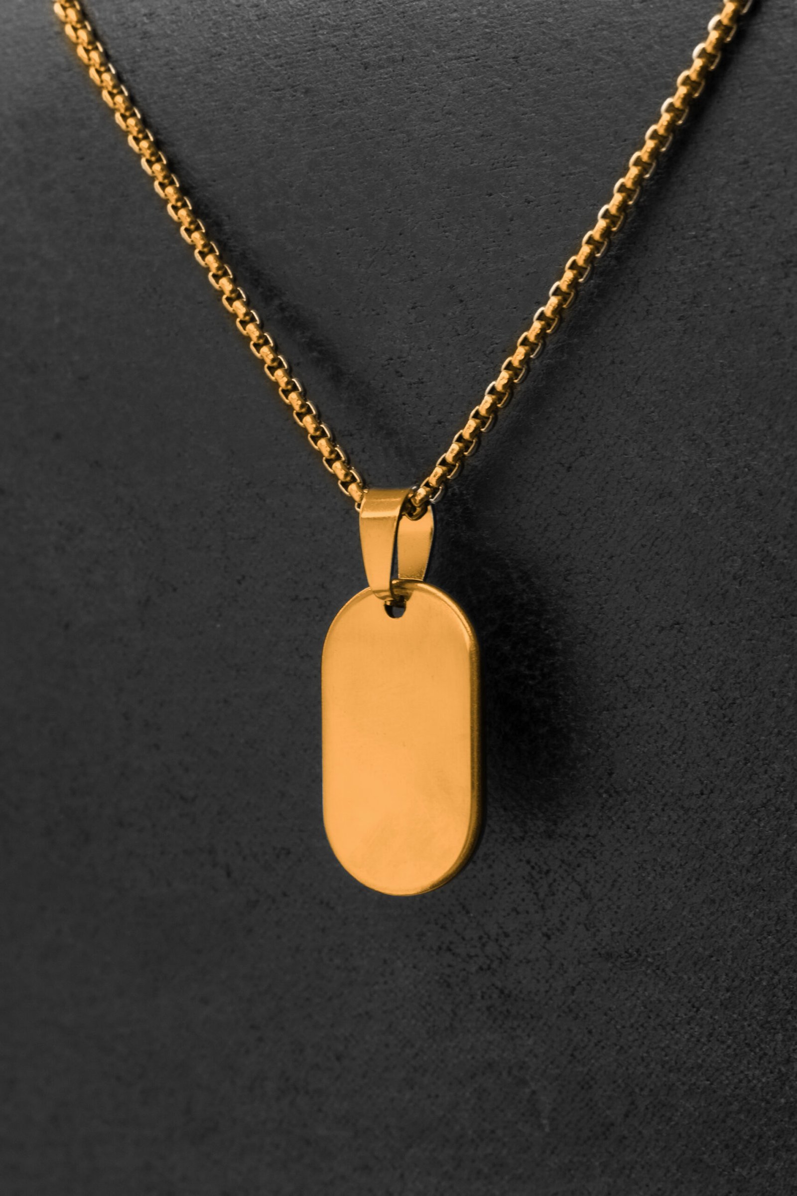 Fuerza, carácter y estilo en una sola pieza: este collar de acero inoxidable en tono dorado con placa tipo militar es el complemento ideal para el hombre que proyecta seguridad y elegancia; su diseño sólido y su resistencia al desgaste lo convierten en un símbolo de masculinidad moderna que se lleva con orgullo todos los días.